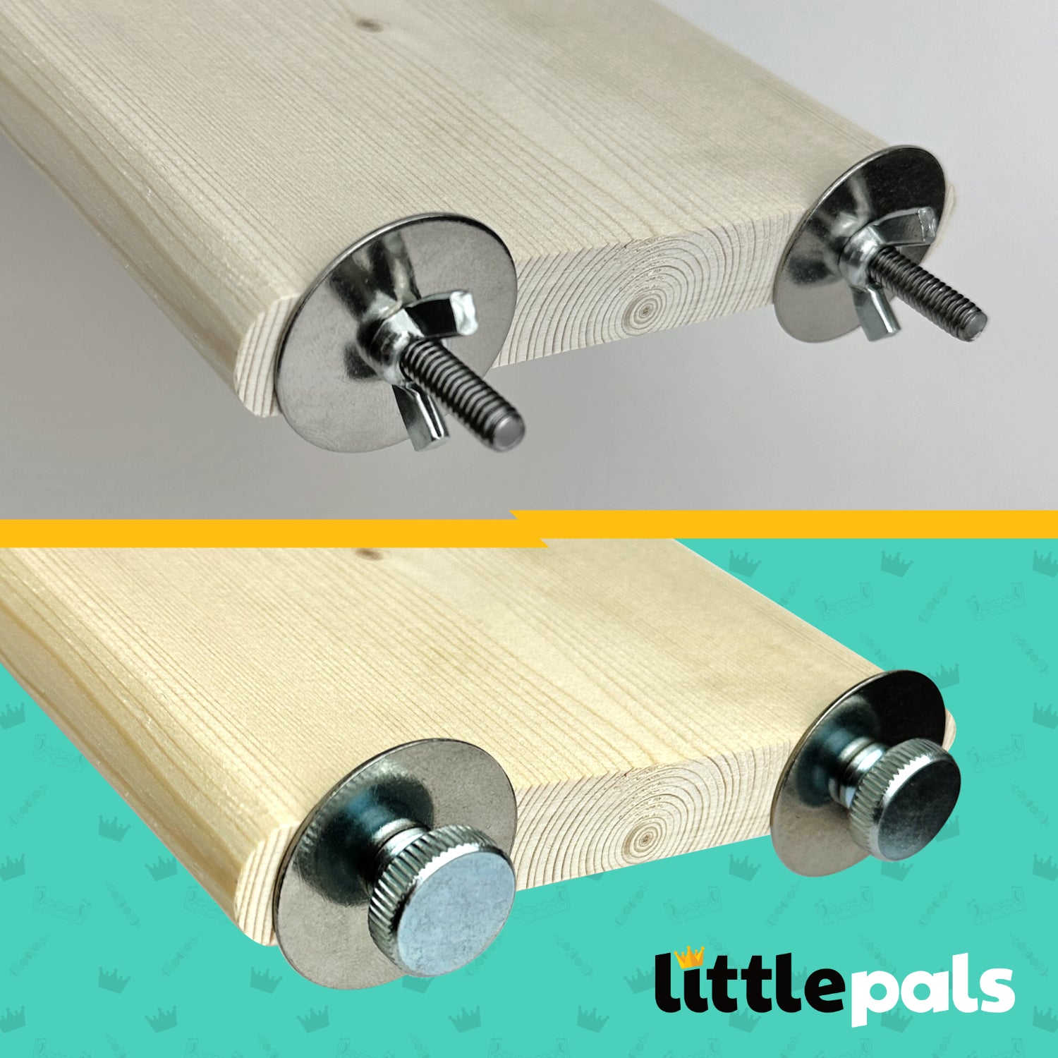 We've upgraded - you can, too! Our Furnichews Upgrade provides a safer, faster, and more ergonomic way to attach your pal's wooden cage accessories.